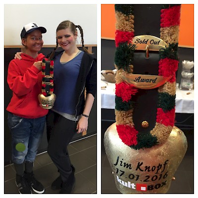 Wir waren mit "Jim Knopf und Lukas der Lokomotivführer" auf großer Fahrt und haben im Allgäu, genauer gesagt in der Kultbox in Kempten, Halt gemacht. Dort wartete als schöne Überraschung ein "Sold Out Award" für zwei ausverkaufte Vorstellungen auf uns.